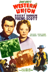 WesternRandolph Scott plays outlaw Vance Shaw who decides to change his ways and work for the growing Western Union company. His brother continues to pursue the life of an outlaw, even going so far as to try and sabotage the telegraph company as they lay down lines between Omaha and Salt Lake City. With the help of a Western Union executive Richard Blake (Robert Young), Scott attempts to keep the growing and important company out of the clutches of an immoral businessman (Dean Jagger). Western Union was adapted from a story by the noted western writer Zane Grey.
